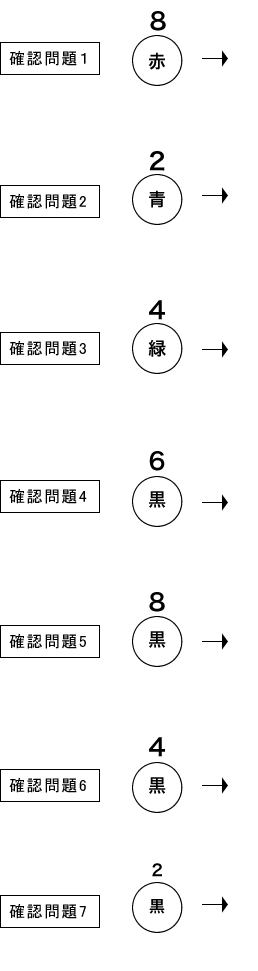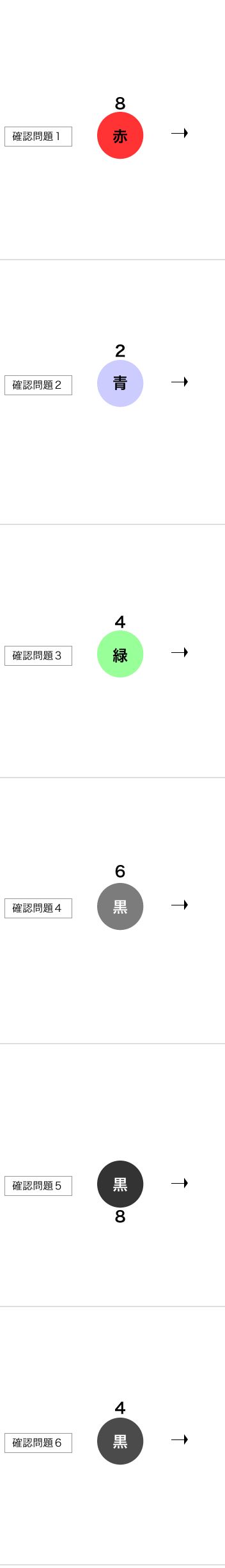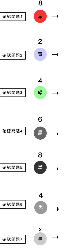 ※【総合問題】混色の確認問題を進めて分からない点があれば8色のグラデーションを覚えましょうに戻って、色の濃度について理解を深めて下さい。